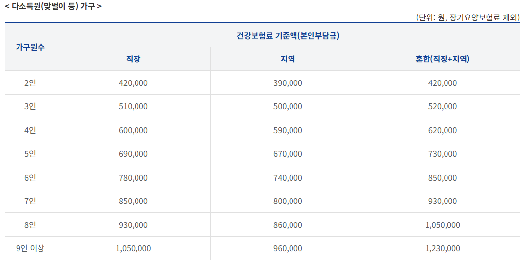 또한, 모든 가구가 동일한 조건으로 볼 수는 없기 때문에 1인 가구 보정 및 다소득원 가구 특례도 존재합니다. 이 부분은 아래에서 상세히 설명드리겠습니다.